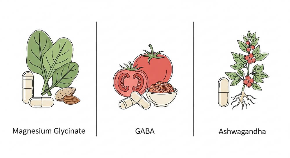 제가 알게 된 영양제로, 1) 마그네슘 2)가바 3)아슈와간다 4)테아닌 이었어요.